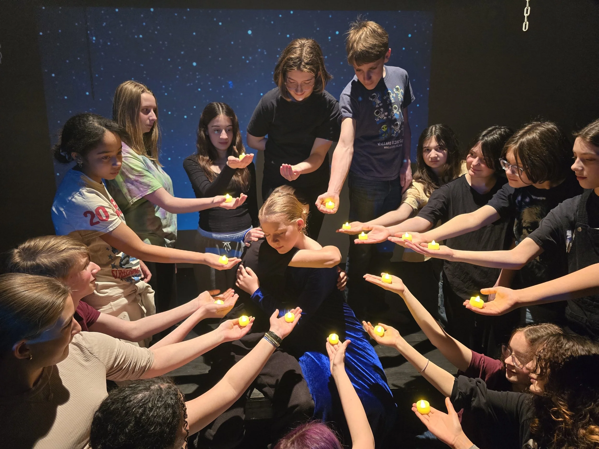 Above: Teen students rehearse for Jess Noel’s adaptation of H.G. Well’s War of The Worlds, Philly PACK, 2024.